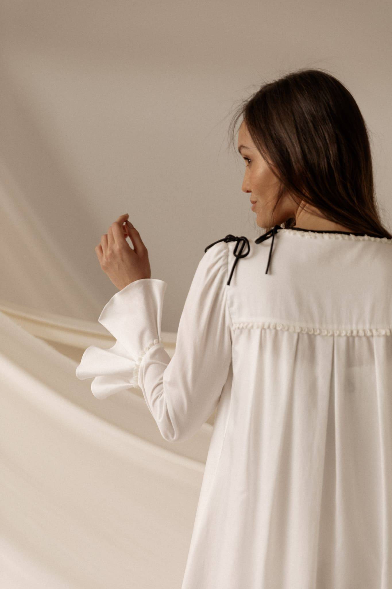 Adentrarse en el atelier de María Gadea es descubrir un mundo poético donde los bordados, los detalles, los lazos o los plisados van añadiendo musicalidad al vestido al tiempo que sus telas en organza, gasas de seda, rafia o lino aportan carácter a sus formas. El vestido desvela, entonces, la delicadeza con la que se narra la historia de cada novia durante ese fabuloso proceso de creación. El primer encuentro con la diseñadora, la complicidad que da paso a la confianza, la sensibilidad con la que se trabajan los vestidos a mano, y el ambiente romántico que emanan de sus modelos, invitan a participar de un fabuloso viaje que convertirán su confección en una inolvidable experiencia. Marie Claire